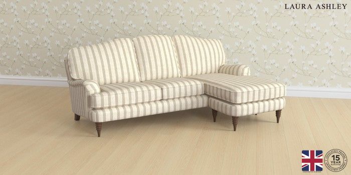 6.12.1 Buy Lynden by Laura Ashley Medium Sofa Chaise - Universal Kinsham Stripe Natural Ornate Turned - Chestnut from the Next UK online shop Click here to use our accessible website