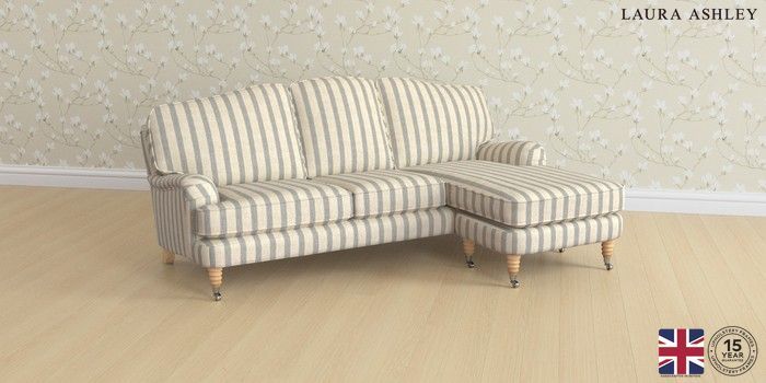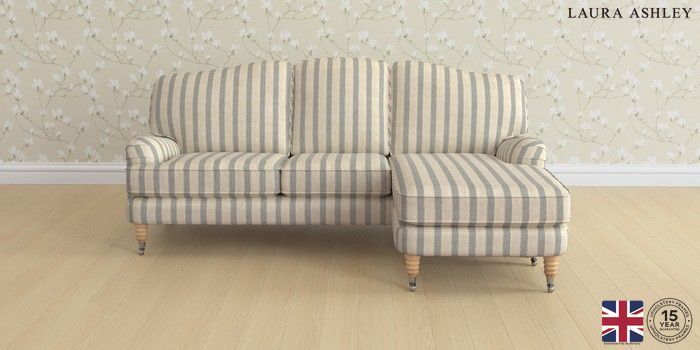 6.12.1 Buy Lynden by Laura Ashley Medium Sofa Chaise - Universal Kinsham Stripe Seaspray Blue Ornate Chrome Castor - Light Oak from the Next UK online shop Click here to use our accessible website