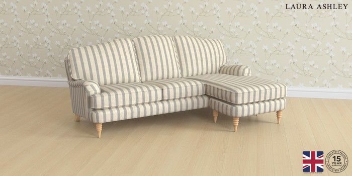 6.12.1 Buy Lynden by Laura Ashley Medium Sofa Chaise - Universal Kinsham Stripe Seaspray Blue Ornate Turned - Light Oak from the Next UK online shop Click here to use our accessible website