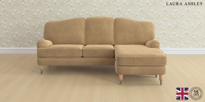 6.12.1 Buy Lynden by Laura Ashley Medium Sofa Chaise - Universal Lundar Chenille Caramel Natural Ornate Chrome Castor - Light Oak from the Next UK online shop Click here to use our accessible website