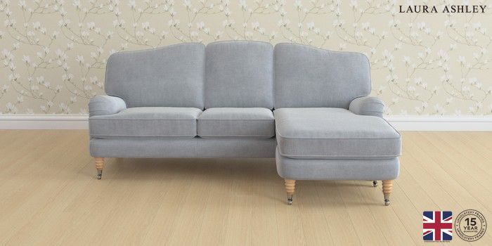 6.12.1 Buy Lynden by Laura Ashley Medium Sofa Chaise - Universal Peyton Powder Blue Ornate Chrome Castor - Light Oak from the Next UK online shop Click here to use our accessible website