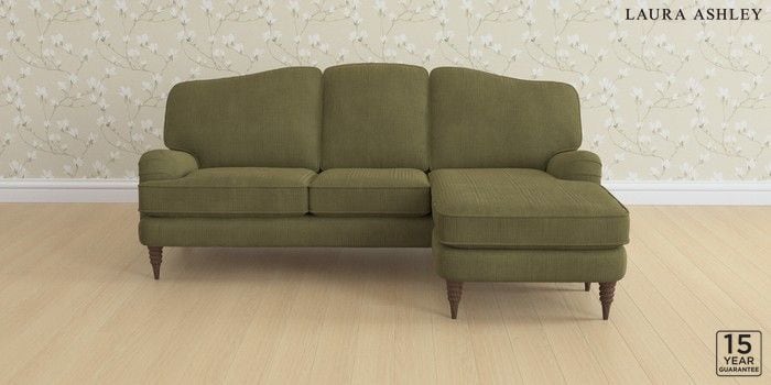 6.12.1 Buy Lynden by Laura Ashley Medium Sofa Chaise - Universal Sinclair Cord Ivy Green Ornate Turned - Chestnut from the Next UK online shop Click here to use our accessible website