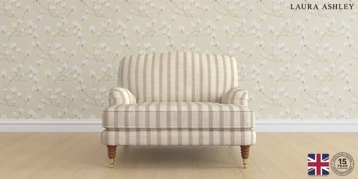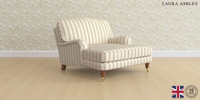 6.12.1 Buy Lynden by Laura Ashley Snuggle Chaise Kinsham Stripe Natural Ornate Brass Castor - Teak from the Next UK online shop Click here to use our accessible website