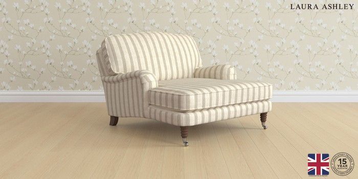 6.12.1 Buy Lynden by Laura Ashley Snuggle Chaise Kinsham Stripe Natural Ornate Chrome Castor - Chestnut from the Next UK online shop Click here to use our accessible website