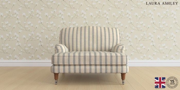 6.12.1 Buy Lynden by Laura Ashley Snuggle Chaise Kinsham Stripe Seaspray Blue Ornate Chrome Castor - Teak from the Next UK online shop Click here to use our accessible website
