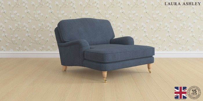 6.12.1 Buy Lynden by Laura Ashley Snuggle Chaise Lundar Chenille Navy Blue Ornate Brass Castor - Light Oak from the Next UK online shop Click here to use our accessible website