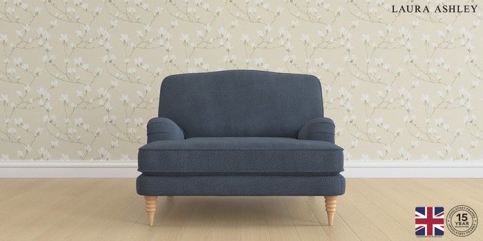 6.12.1 Buy Lynden by Laura Ashley Snuggle Chaise Lundar Chenille Navy Blue Ornate Turned - Light Oak from the Next UK online shop Click here to use our accessible website