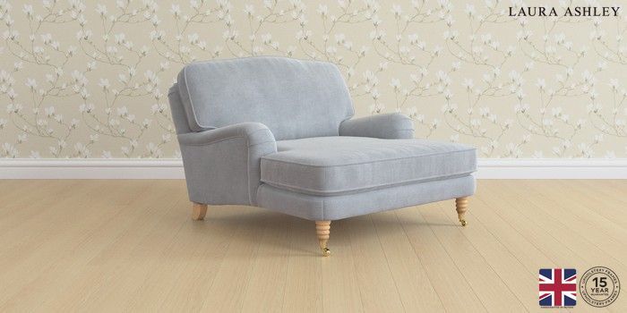 6.12.1 Buy Lynden by Laura Ashley Snuggle Chaise Peyton Powder Blue Ornate Brass Castor - Light Oak from the Next UK online shop Click here to use our accessible website