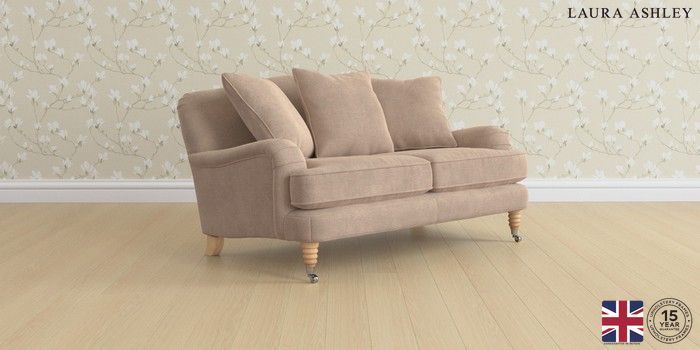 6.12.1 Buy Lynden Scatter Back by Laura Ashley 2 Seater Small Sofa Ailsworth Mink Natural Ornate Chrome Castor - Light Oak from the Next UK online shop Click here to use our accessible website