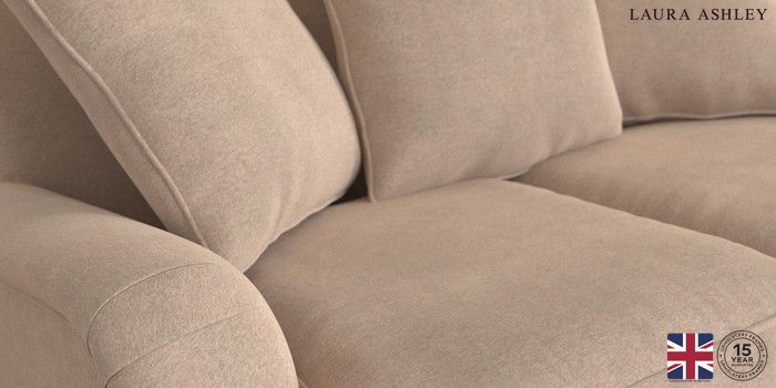 6.12.1 Buy Lynden Scatter Back by Laura Ashley 2 Seater Small Sofa Ailsworth Mink Natural Ornate Chrome Castor - Teak from the Next UK online shop Click here to use our accessible website