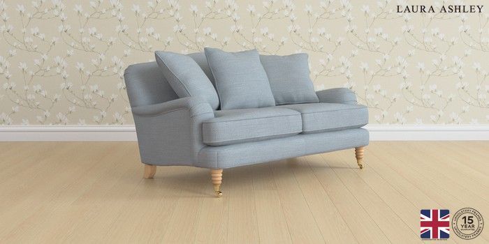 6.12.1 Buy Lynden Scatter Back by Laura Ashley 2 Seater Small Sofa Kinsham Seaspray Blue Ornate Brass Castor - Light Oak from the Next UK online shop Click here to use our accessible website