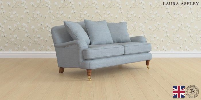 6.12.1 Buy Lynden Scatter Back by Laura Ashley 2 Seater Small Sofa Kinsham Seaspray Blue Ornate Brass Castor - Teak from the Next UK online shop Click here to use our accessible website