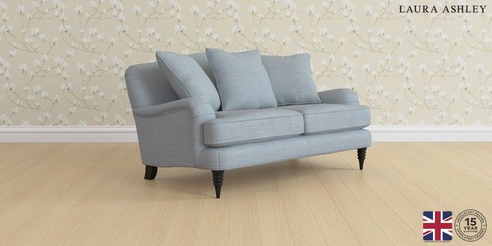 6.12.1 Buy Lynden Scatter Back by Laura Ashley 2 Seater Small Sofa Kinsham Seaspray Blue Ornate Turned - Black from the Next UK online shop Click here to use our accessible website