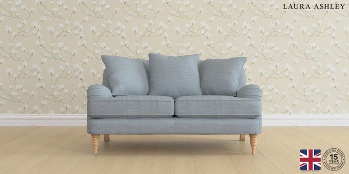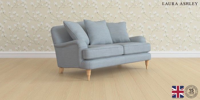 6.12.1 Buy Lynden Scatter Back by Laura Ashley 2 Seater Small Sofa Kinsham Seaspray Blue Ornate Turned - Light Oak from the Next UK online shop Click here to use our accessible website