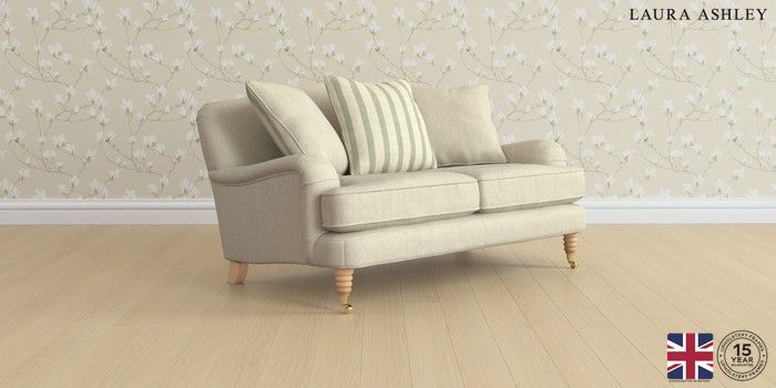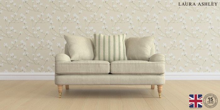 6.12.1 Buy Lynden Scatter Back by Laura Ashley 2 Seater Small Sofa Kinsham Stripe Combo Natural and Hedgerow Green Ornate Brass Castor - Light Oak from the Next UK online shop Click here to use our accessible website