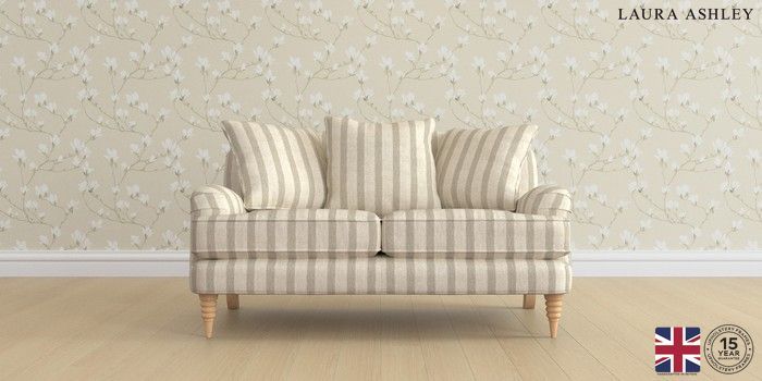 6.12.1 Buy Lynden Scatter Back by Laura Ashley 2 Seater Small Sofa Kinsham Stripe Natural Ornate Turned - Light Oak from the Next UK online shop Click here to use our accessible website