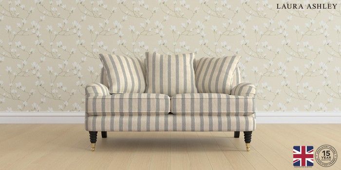 6.12.1 Buy Lynden Scatter Back by Laura Ashley 2 Seater Small Sofa Kinsham Stripe Seaspray Blue Ornate Brass Castor - Black from the Next UK online shop Click here to use our accessible website