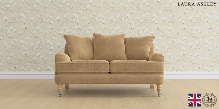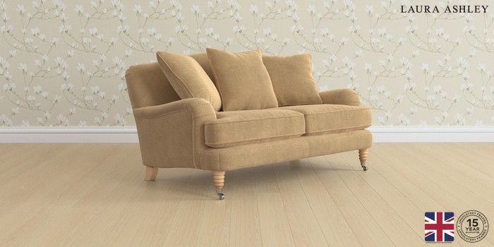 6.12.1 Buy Lynden Scatter Back by Laura Ashley 2 Seater Small Sofa Lundar Chenille Caramel Natural Ornate Chrome Castor - Light Oak from the Next UK online shop Click here to use our accessible website