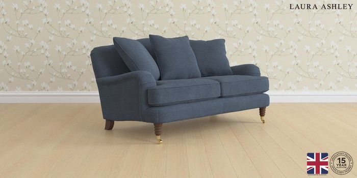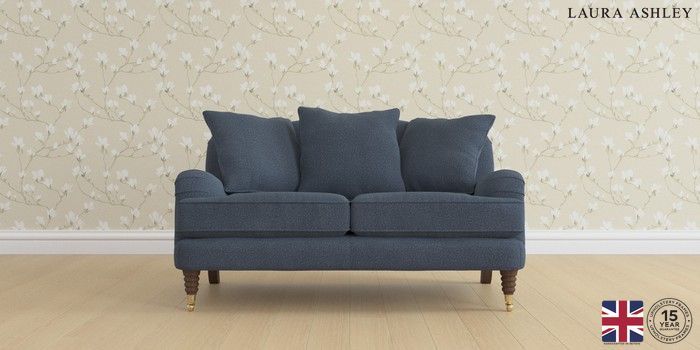 6.12.1 Buy Lynden Scatter Back by Laura Ashley 2 Seater Small Sofa Lundar Chenille Navy Blue Ornate Brass Castor - Chestnut from the Next UK online shop Click here to use our accessible website