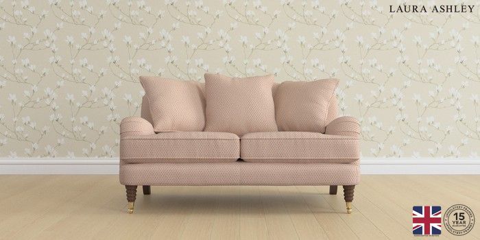 6.12.1 Buy Lynden Scatter Back by Laura Ashley 2 Seater Small Sofa Melbreak Geo Chalk Pink Ornate Brass Castor - Chestnut from the Next UK online shop Click here to use our accessible website