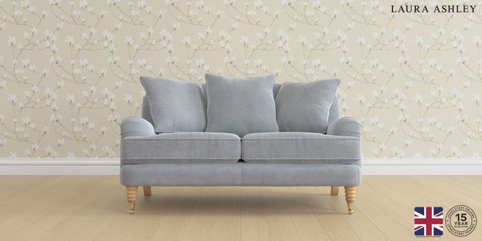 6.12.1 Buy Lynden Scatter Back by Laura Ashley 2 Seater Small Sofa Peyton Powder Blue Ornate Brass Castor - Light Oak from the Next UK online shop Click here to use our accessible website
