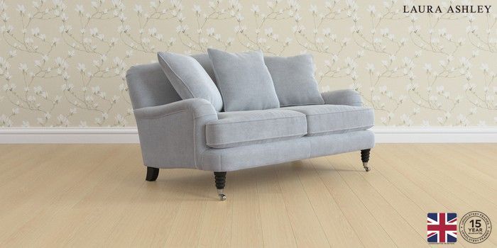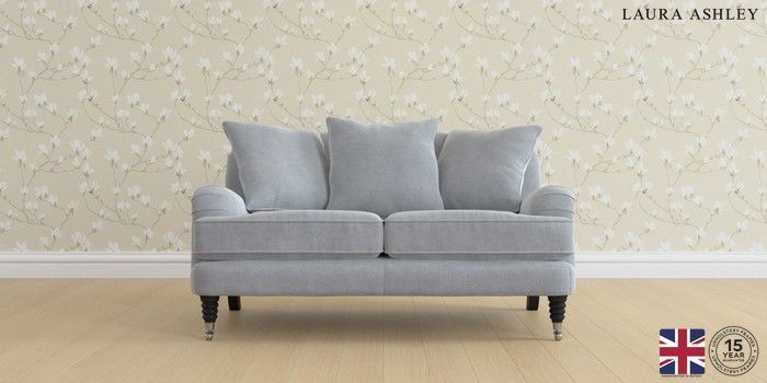 6.12.1 Buy Lynden Scatter Back by Laura Ashley 2 Seater Small Sofa Peyton Powder Blue Ornate Chrome Castor - Black from the Next UK online shop Click here to use our accessible website