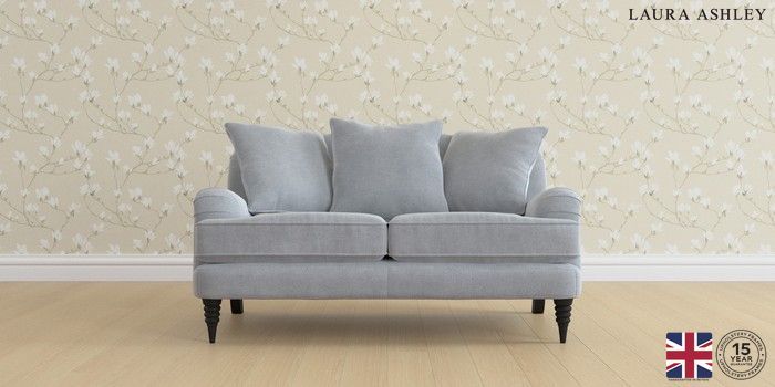 6.12.1 Buy Lynden Scatter Back by Laura Ashley 2 Seater Small Sofa Peyton Powder Blue Ornate Turned - Black from the Next UK online shop Click here to use our accessible website