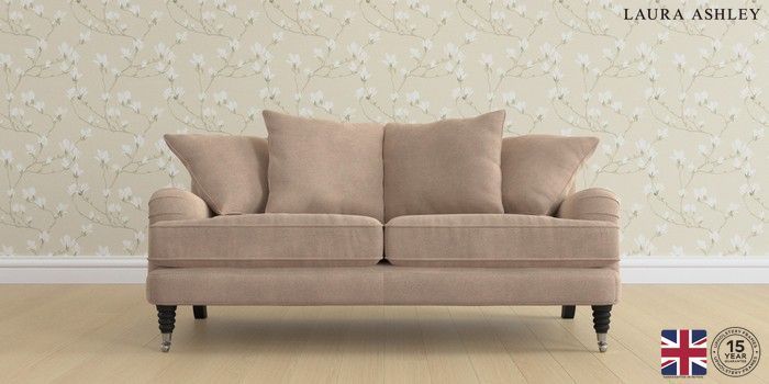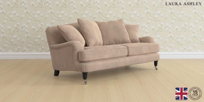 6.12.1 Buy Lynden Scatter Back by Laura Ashley 3 Seater Small Sofa Ailsworth Mink Natural Ornate Chrome Castor - Black from the Next UK online shop Click here to use our accessible website