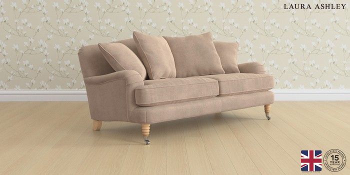 6.12.1 Buy Lynden Scatter Back by Laura Ashley 3 Seater Small Sofa Ailsworth Mink Natural Ornate Chrome Castor - Light Oak from the Next UK online shop Click here to use our accessible website