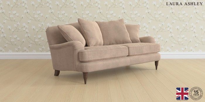 6.12.1 Buy Lynden Scatter Back by Laura Ashley 3 Seater Small Sofa Ailsworth Mink Natural Ornate Turned - Chestnut from the Next UK online shop Click here to use our accessible website