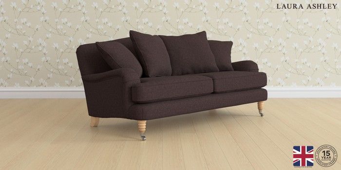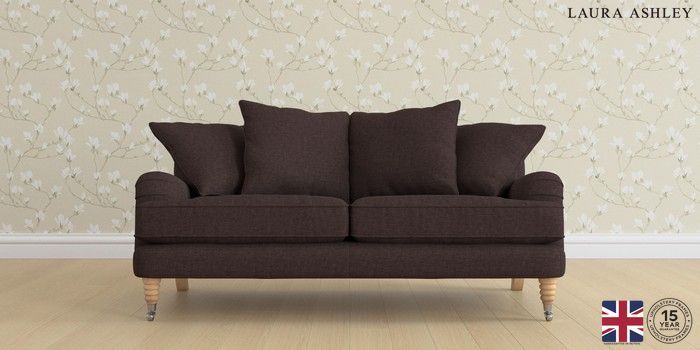 7.0.3 Buy Lynden Scatter Back by Laura Ashley 3 Seater Small Sofa Bainton Chocolate Brown Ornate Chrome Castor - Light Oak from the Next UK online shop Click here to use our accessible website