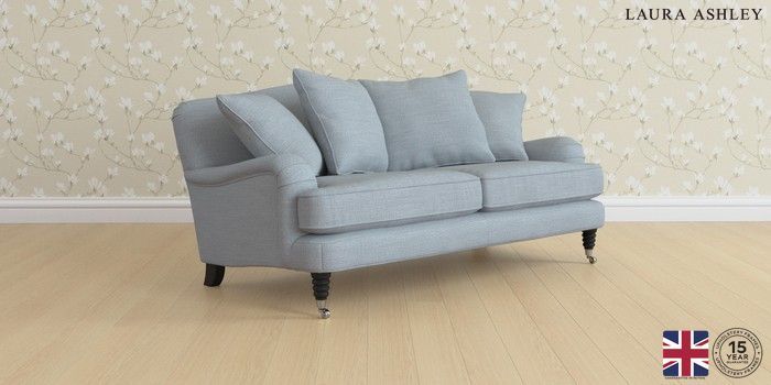 6.12.1 Buy Lynden Scatter Back by Laura Ashley 3 Seater Small Sofa Kinsham Seaspray Blue Ornate Chrome Castor - Black from the Next UK online shop Click here to use our accessible website