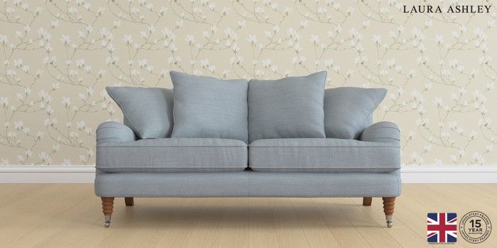 6.12.1 Buy Lynden Scatter Back by Laura Ashley 3 Seater Small Sofa Kinsham Seaspray Blue Ornate Chrome Castor - Teak from the Next UK online shop Click here to use our accessible website