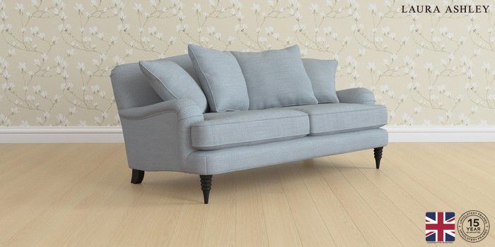 6.12.1 Buy Lynden Scatter Back by Laura Ashley 3 Seater Small Sofa Kinsham Seaspray Blue Ornate Turned - Black from the Next UK online shop Click here to use our accessible website