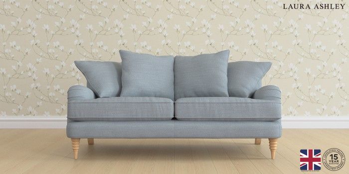 6.12.1 Buy Lynden Scatter Back by Laura Ashley 3 Seater Small Sofa Kinsham Seaspray Blue Ornate Turned - Light Oak from the Next UK online shop Click here to use our accessible website