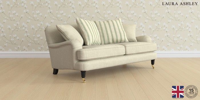 6.12.1 Buy Lynden Scatter Back by Laura Ashley 3 Seater Small Sofa Kinsham Stripe Combo Natural and Hedgerow Green Ornate Brass Castor - Black from the Next UK online shop Click here to use our accessible website