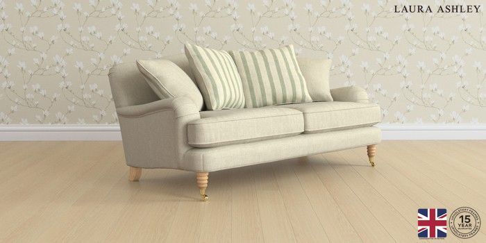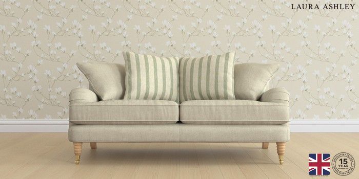 6.12.1 Buy Lynden Scatter Back by Laura Ashley 3 Seater Small Sofa Kinsham Stripe Combo Natural and Hedgerow Green Ornate Brass Castor - Light Oak from the Next UK online shop Click here to use our accessible website