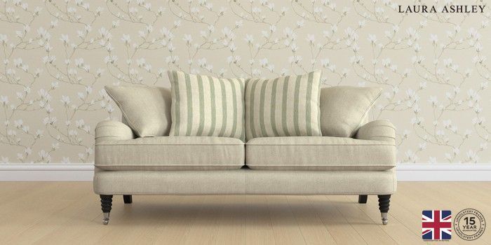 6.12.1 Buy Lynden Scatter Back by Laura Ashley 3 Seater Small Sofa Kinsham Stripe Combo Natural and Hedgerow Green Ornate Chrome Castor - Black from the Next UK online shop Click here to use our accessible website