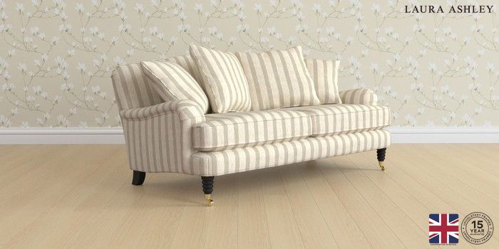 6.12.1 Buy Lynden Scatter Back by Laura Ashley 3 Seater Small Sofa Kinsham Stripe Natural Ornate Brass Castor - Black from the Next UK online shop Click here to use our accessible website