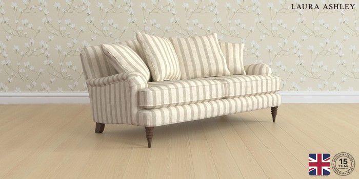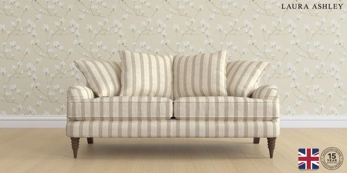 6.12.1 Buy Lynden Scatter Back by Laura Ashley 3 Seater Small Sofa Kinsham Stripe Natural Ornate Turned - Chestnut from the Next UK online shop Click here to use our accessible website