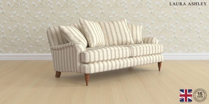 6.12.1 Buy Lynden Scatter Back by Laura Ashley 3 Seater Small Sofa Kinsham Stripe Natural Ornate Turned - Teak from the Next UK online shop Click here to use our accessible website
