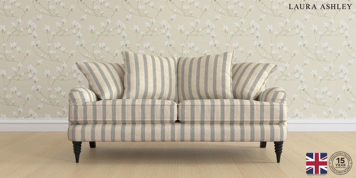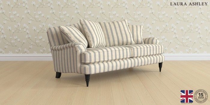 6.12.1 Buy Lynden Scatter Back by Laura Ashley 3 Seater Small Sofa Kinsham Stripe Seaspray Blue Ornate Turned - Black from the Next UK online shop Click here to use our accessible website