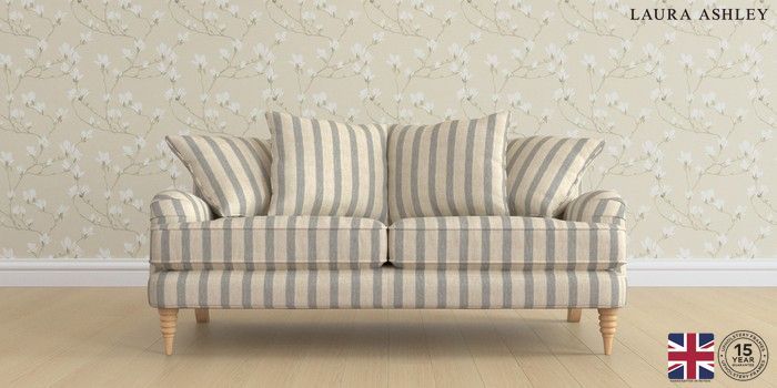 6.12.1 Buy Lynden Scatter Back by Laura Ashley 3 Seater Small Sofa Kinsham Stripe Seaspray Blue Ornate Turned - Light Oak from the Next UK online shop Click here to use our accessible website