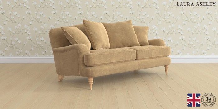6.12.1 Buy Lynden Scatter Back by Laura Ashley 3 Seater Small Sofa Lundar Chenille Caramel Natural Ornate Turned - Light Oak from the Next UK online shop Click here to use our accessible website
