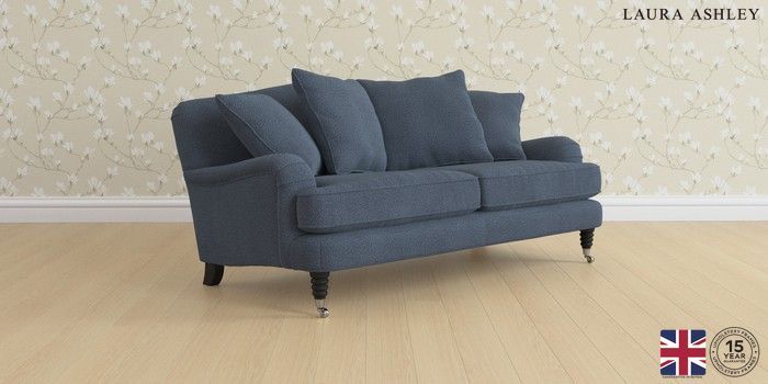 6.12.1 Buy Lynden Scatter Back by Laura Ashley 3 Seater Small Sofa Lundar Chenille Navy Blue Ornate Chrome Castor - Black from the Next UK online shop Click here to use our accessible website