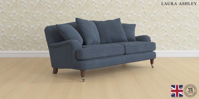 6.12.1 Buy Lynden Scatter Back by Laura Ashley 3 Seater Small Sofa Lundar Chenille Navy Blue Ornate Chrome Castor - Chestnut from the Next UK online shop Click here to use our accessible website