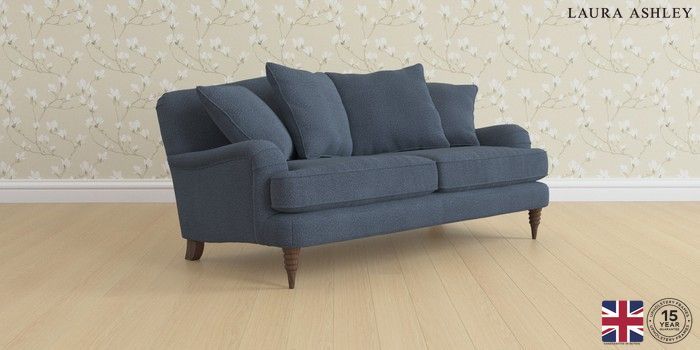 6.12.1 Buy Lynden Scatter Back by Laura Ashley 3 Seater Small Sofa Lundar Chenille Navy Blue Ornate Turned - Chestnut from the Next UK online shop Click here to use our accessible website