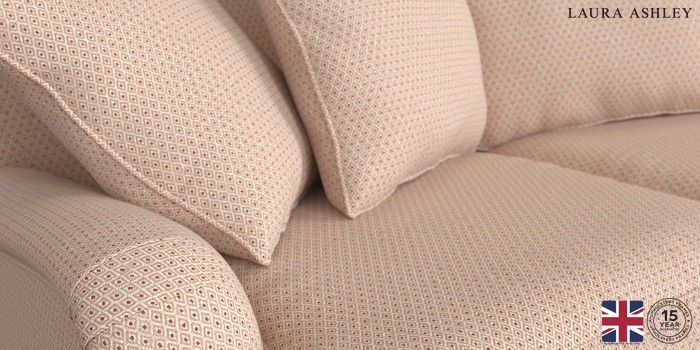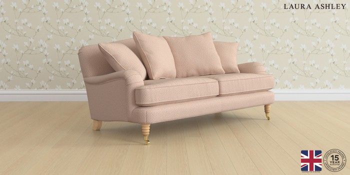 6.12.1 Buy Lynden Scatter Back by Laura Ashley 3 Seater Small Sofa Melbreak Geo Chalk Pink Ornate Brass Castor - Light Oak from the Next UK online shop Click here to use our accessible website