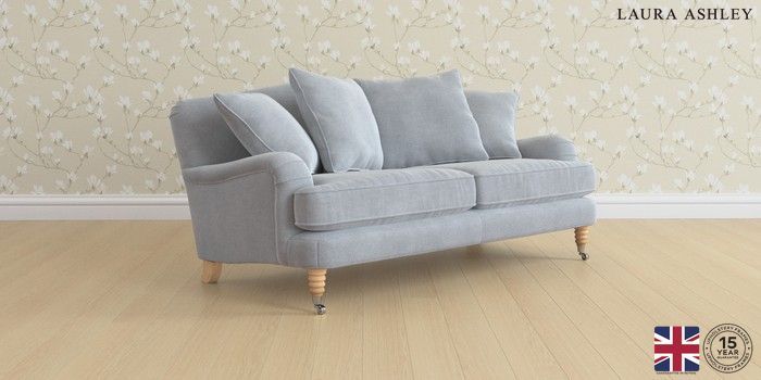 6.12.1 Buy Lynden Scatter Back by Laura Ashley 3 Seater Small Sofa Peyton Powder Blue Ornate Chrome Castor - Light Oak from the Next UK online shop Click here to use our accessible website