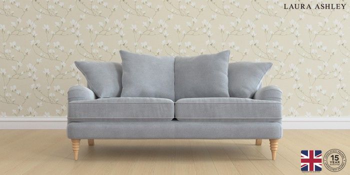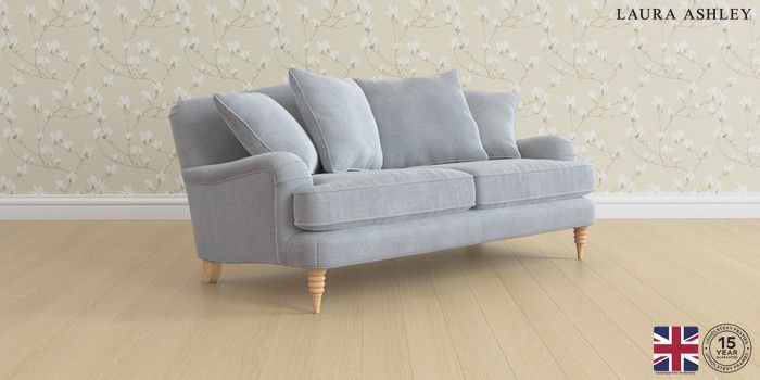 6.12.1 Buy Lynden Scatter Back by Laura Ashley 3 Seater Small Sofa Peyton Powder Blue Ornate Turned - Light Oak from the Next UK online shop Click here to use our accessible website